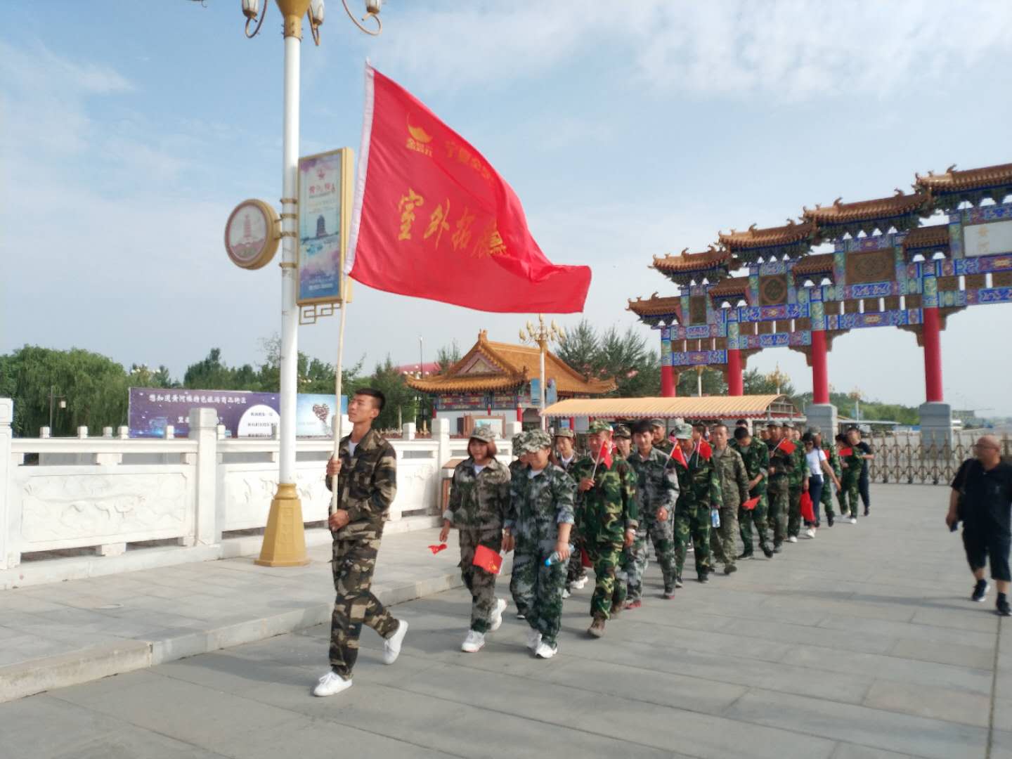 早上8點到黃河樓后,我們對18名新學員進行了分組,將隊員分成兩支隊伍,由隊長組織進行游戲。在隊長的帶領下,各隊隊員精誠合作,相互支持,先后進行了“跳繩比賽”、“個人跳繩比賽”、“斗牛比賽”“背對背運氣球比賽”“拔河比賽”、“俯臥撐比賽”等拓展項目。