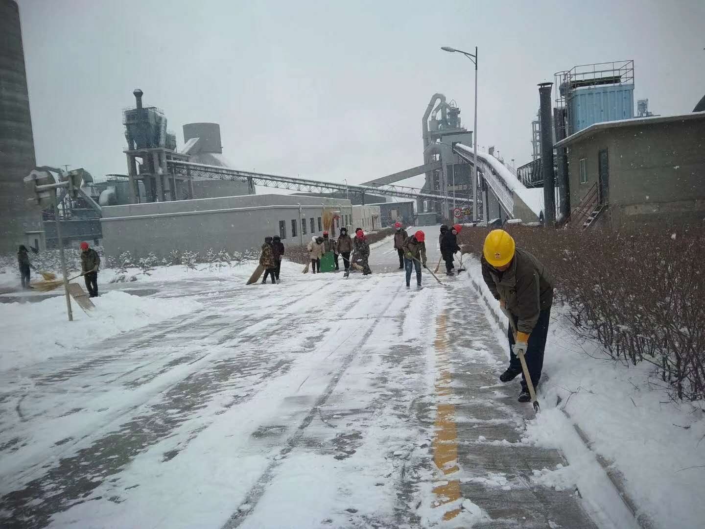 2月16日,迎來(lái)了2019年第一場(chǎng)茫茫大雪,讓整個(gè)廠區(qū)銀裝素裹,畫(huà)面甚美,但是由于降雪冰凍,廠區(qū)設(shè)備、運(yùn)輸路面、辦公區(qū)域的積雪,給公司的生產(chǎn)運(yùn)行和員工出行帶來(lái)了極大的安全隱患,為及時(shí)消除因積雪而存在的安全隱患,確保廠區(qū)道路安全暢通,17日早上,公司組織全體員工開(kāi)展積雪清掃工作。
