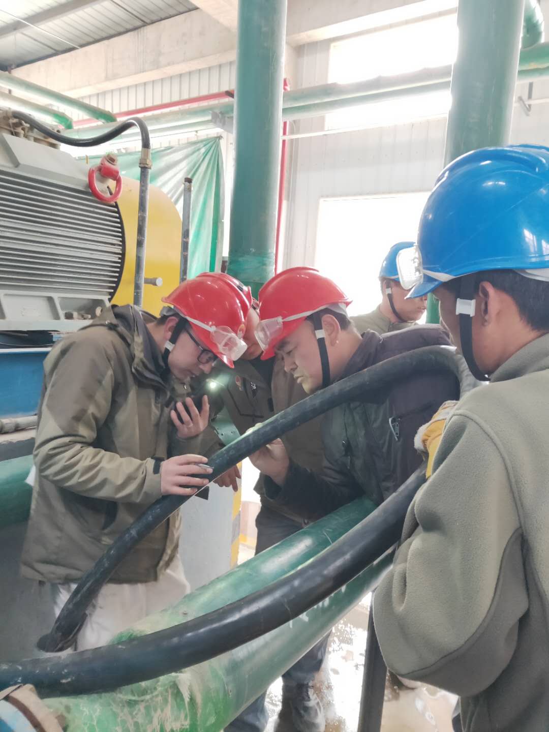 檢修現(xiàn)場(chǎng),新員工在摸索中不斷前進(jìn)大膽嘗試,在師傅的帶領(lǐng)下提高自身技能,相信這次檢修作業(yè)中他們會(huì)學(xué)到更多!在檢修期間,各裝置區(qū)對(duì)于施工現(xiàn)場(chǎng)布置可謂井井有條,忙而不亂,新員工協(xié)助老師傅開(kāi)展工作,現(xiàn)場(chǎng)各類工量器具擺放整齊,信手拈來(lái)游刃有余,新舊棉紗分類,清洗油和廢油各有專用容器盛放,為快速、安全、高質(zhì)量檢修提供了有力保障。