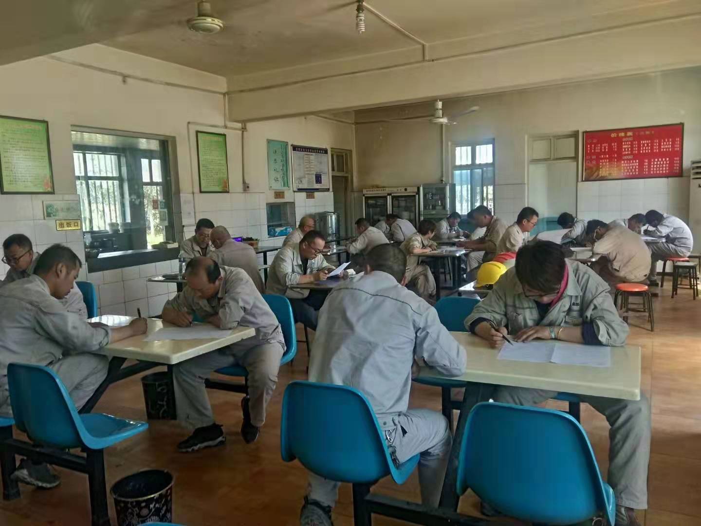 考試分為兩場進行,考場分別設(shè)在公司餐廳及會議室,此次考試以近期培訓的《危害生產(chǎn)安全刑事案件兩高司法解釋》、《危險性作業(yè)管理要求》、《電石、水泥系統(tǒng)較大風險作業(yè)安全管控措施》及管理人員應知應會知識為主,考試分為A、B卷組織進行,現(xiàn)場為避免抄襲現(xiàn)象,組織將手機集中保管,分離對坐。