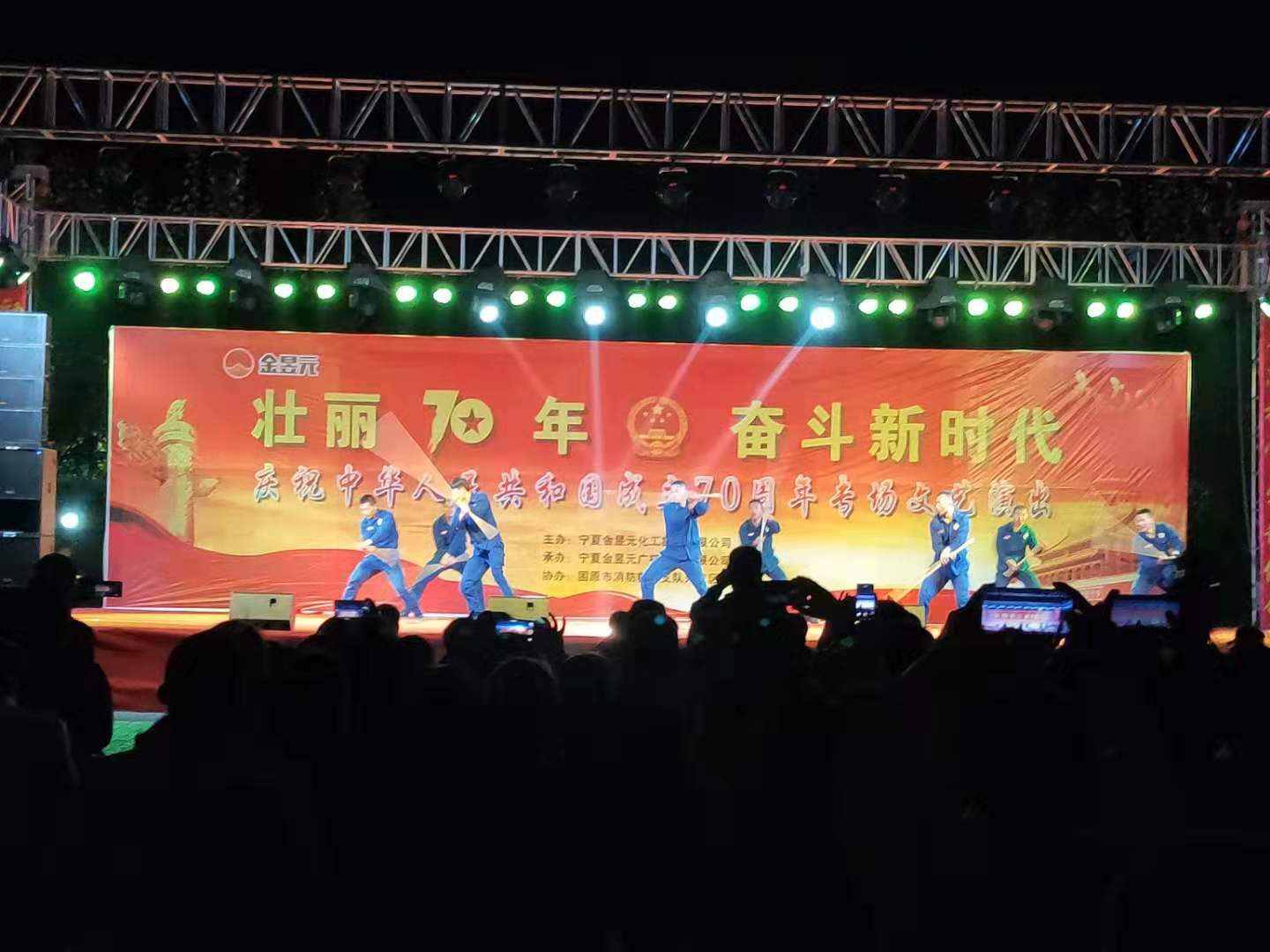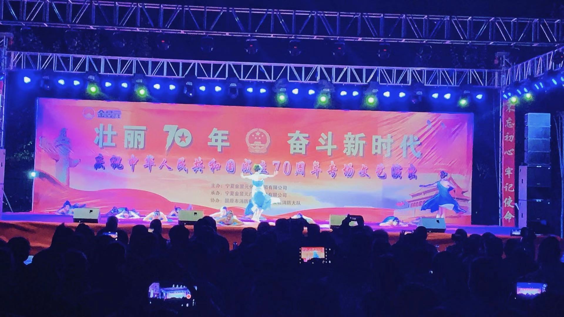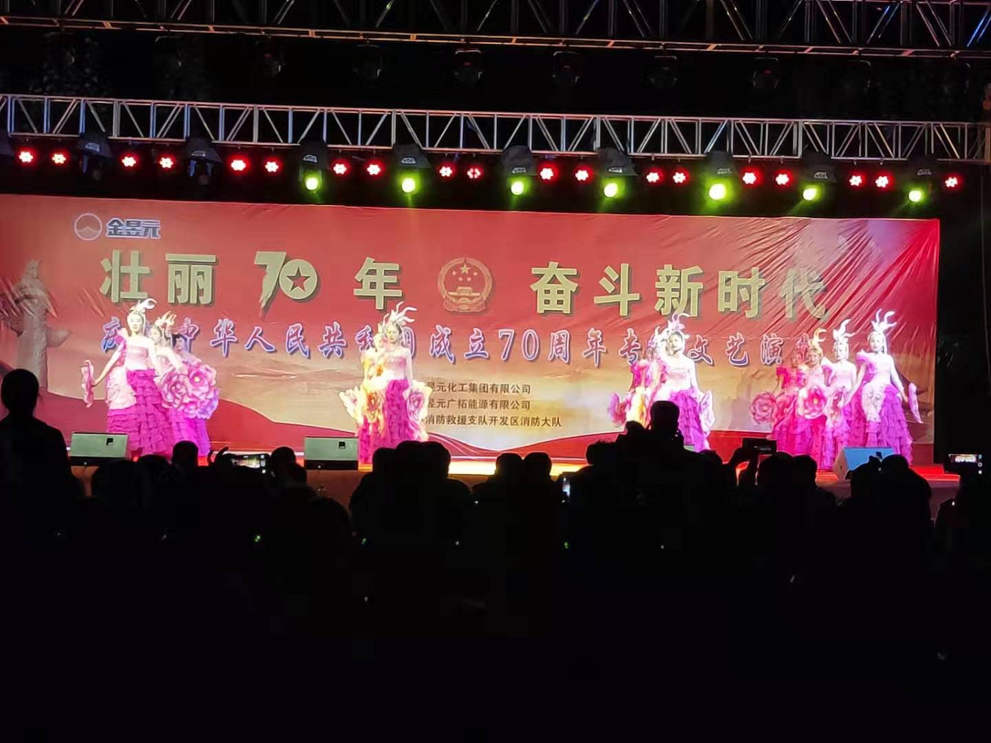為慶祝新中國成立70周年,寧夏金昱元化工集團(tuán)攜手固原市開發(fā)區(qū)消防大隊(duì)舉辦了以“壯麗70年,奮斗新時代”為主題的文藝匯演晚會,2019年9月26日晚,文藝匯演來到固原片區(qū),固原經(jīng)濟(jì)開發(fā)區(qū)管委會,固原市工信局,固原市消防救援支隊(duì)開發(fā)區(qū)消防大隊(duì),集團(tuán)公司、固原片區(qū)相關(guān)領(lǐng)導(dǎo)以及各子公司職工代表,外協(xié)單位共計400余人觀看了本次文藝匯演活動。