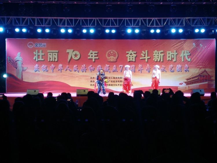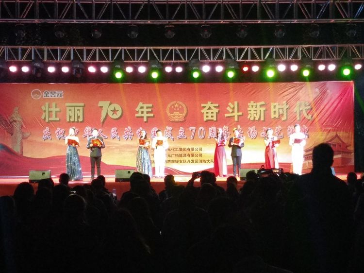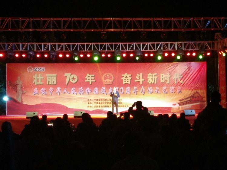 在新中國成立70周年來臨之際,寧夏金昱元化工集團(tuán)舉辦此次文藝匯演活動,不僅為廣大群眾奉獻(xiàn)了一場精彩的視聽盛宴,表達(dá)了各族人民對黨和祖國的熱愛和美好祝愿,更激發(fā)了大家愛國愛黨的熱情,增強(qiáng)了各級群眾的凝聚力、向心力。我們滿懷赤子之心,向祖國獻(xiàn)禮,用歌聲祝福祖國繁榮昌盛,祝福明天的中國更加美好!