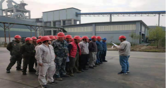 10月16日上午7時40分,成品裝置集結(jié)熟料煅燒工序、維修班人員針對回轉(zhuǎn)窯耐火磚挖補(bǔ)進(jìn)行檢修前的動員大會。