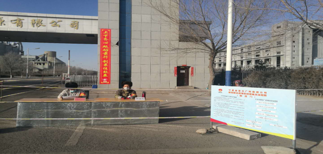 在公司北大門,他們對進(jìn)出廠區(qū)職工及車輛登記,嚴(yán)格“疫情”防控工作。