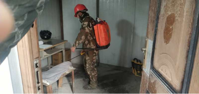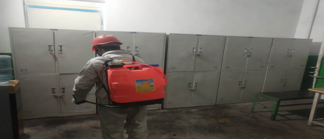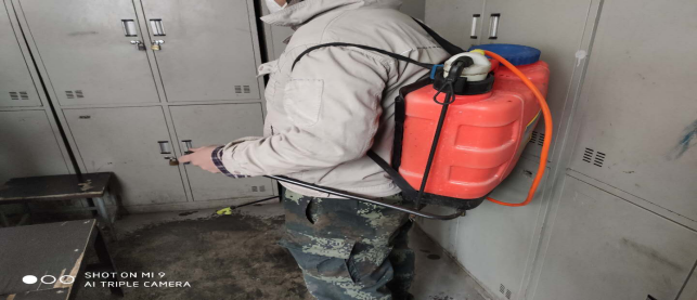 對(duì)廠區(qū)衛(wèi)生間消毒。