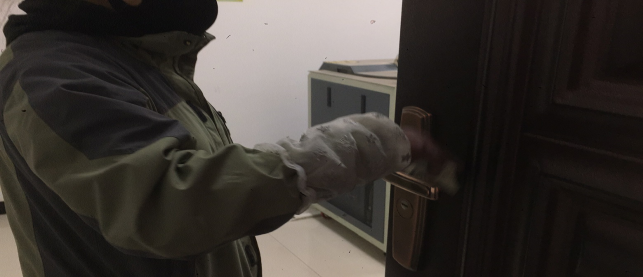 擦拭操作臺(tái)、門把手,工作的有條不紊。