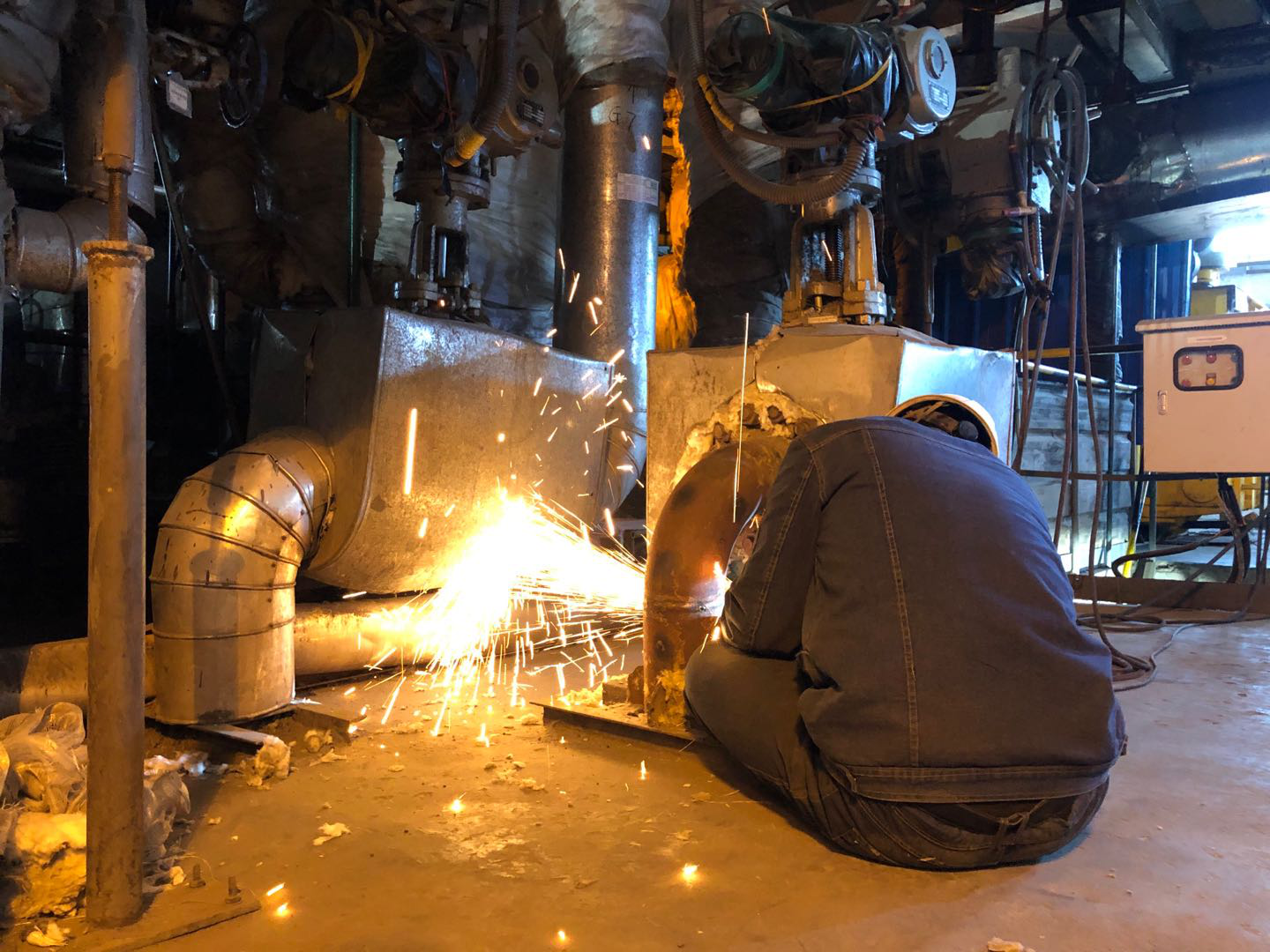 4月8日隨著1#汽輪機(jī)組停運(yùn)1#鍋爐熄火后,熱電一期系統(tǒng)緊張的檢修工作正式開始。1#機(jī)高加水側(cè)彎頭需重新打磨補(bǔ)焊,夾層不但很悶熱,而且空間小,打磨補(bǔ)焊及其不容易,檢修人員變換著各種憋屈動作進(jìn)行作業(yè),等他們補(bǔ)焊結(jié)束后,已經(jīng)直不起腰,靠在欄桿邊稍作休息之后又投入到其他檢修工作中。