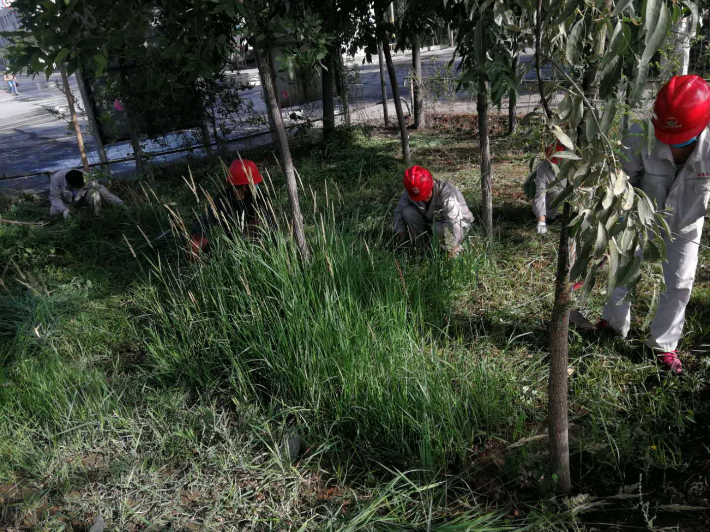 七月二日早上八點(diǎn)整,資源再生公司組織所有共產(chǎn)黨員及日勤人員在公司內(nèi)開展黨員志愿服務(wù)活動。主要對公司東側(cè)馬路綠化帶內(nèi)雜草進(jìn)行處理。清晨的陽光透過樹的縫隙溫柔的灑在所有人的身上,帶著露水的雜草在所有人的努力下被連根拔起。一把一把,一片一片,平整的草地露出了原來的模樣。隨著太陽的西移,陽光熱烈了起來,溫度也隨之升高,所有人的臉上出現(xiàn)了汗珠,可大家絲毫沒有懈怠,直到把那一片的草全部除完,才收工回崗位工作。