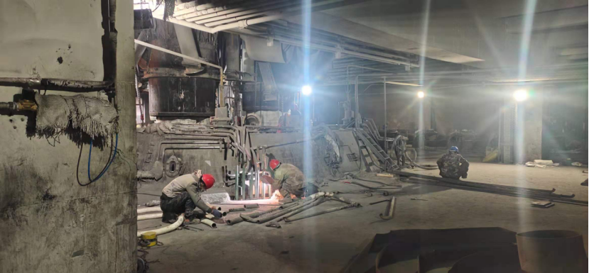 此次大檢修的項(xiàng)目包括:更換部分循環(huán)水管,檢查電極本體,打磨補(bǔ)焊水冷套,消除爐蓋漏點(diǎn),更換過濾倉粗煤氣彎管等一系列大型檢修項(xiàng)目,為之后的設(shè)備保養(yǎng)工作起到了良好的鋪墊作用。此次檢修工作順利進(jìn)行,離不開本裝置檢修工人和其他裝置維修工的團(tuán)結(jié)互助,無私奉獻(xiàn),他們?nèi)蝿谌卧沟墓ぷ鲬B(tài)度值得我們敬佩。他們的英姿如同