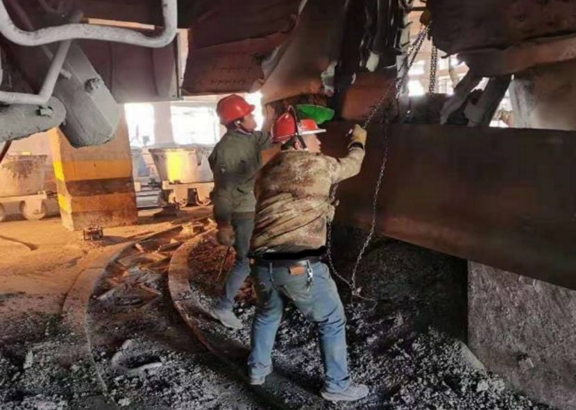 12月20日,維修工對(duì)出爐口出爐設(shè)備設(shè)施進(jìn)行修復(fù),主要修復(fù)了出爐口防火墻擋板、校正出爐軌道板和導(dǎo)向輪,大大減少了出爐系統(tǒng)制約生產(chǎn)的現(xiàn)象。隨著環(huán)保局勢(shì)日益嚴(yán)峻,裝置組織維修工檢查圓盤布料器散點(diǎn)收塵和出爐收塵煙罩,確保收塵效果。