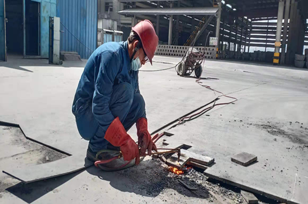 炎熱的成品庫旁,他們正在安裝區(qū)域防護網(wǎng)。測量、打眼、安裝、緊螺絲,每一個細節(jié)都不能馬虎大意,雖頂著烈日,他們干工作有條不紊,仔細規(guī)劃著距離,精心安裝每一扇防護墻。相較于爐面高溫檢修,此刻的溫度,他們耐得住、經(jīng)得住。是的,他們已是千錘百煉,經(jīng)得起這“火”的考驗。