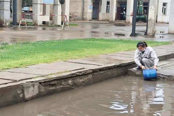 無論刮風(fēng)還是下雨,天氣有多惡劣 ,總有一群人,她們始終是堅(jiān)守在崗位一線的最美員工,那就是從事質(zhì)檢分析的女工們。其實(shí)在四班三倒的日子里,她們最頭疼的不是工作忙,而是遇見雨雪天氣,特別是下雨天時(shí),出門去現(xiàn)場取樣就變得困難了很多,有時(shí)候?yàn)榱巳臃奖,她們寧愿選擇不打傘、不穿雨衣,一趟下來,衣服和鞋子差不多全濕透了。這不,那一晚她們就迎來了一夜的雨,從小雨逐漸變成中雨,聽著外面的雨聲,她們?nèi)缱槡,萬一變成暴雨可怎么辦,雨一直不停又怎么辦,外面的雨已經(jīng)越下越大,但到了取樣時(shí)間她們不畏困難做好防護(hù)準(zhǔn)時(shí)到現(xiàn)場取樣,她們堅(jiān)信遇到再大困難也要戰(zhàn)勝困難,去完成自己的工作。終于等到了天亮,雨也停了下來,等待她們的就是清理積水?粗敲匆淮笃e水,沒有抽水泵,這讓她們犯起了難,思考了片刻,她們決定用最老土的辦法使用水桶、笤帚、簸箕清理積水,說干就干,水比較深,只好換上了雨鞋,大家分工明確,掃地掃,鏟地鏟,提得提,倒得倒,一會(huì)的功夫積水已經(jīng)少了很多,在大家緊密的配合下,最終把坑里積水全部清理了出去。