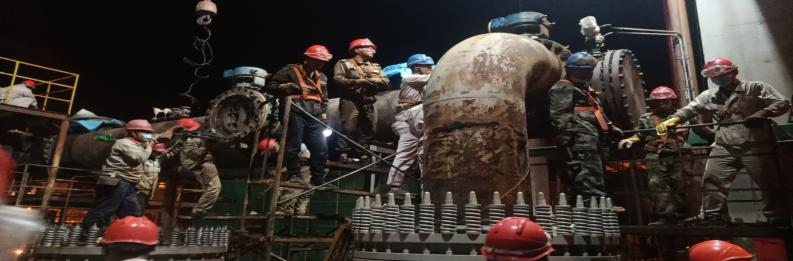 其他裝置檢修也是火熱朝天,來來往往,每個(gè)人都忙的不可開交,廢寢忘食,好像只要系統(tǒng)能夠順利開車,其他什么都不重要。此次停車檢修各裝置檢修內(nèi)容多,但是在每一級領(lǐng)導(dǎo)的安排下,每項(xiàng)檢修工作都在忙碌中進(jìn)行著。一系統(tǒng)順利開車后,所有人員未松一口氣,接著二系統(tǒng)停車檢修,有了一系統(tǒng)檢修的經(jīng)驗(yàn),二系統(tǒng)檢修順利開車。