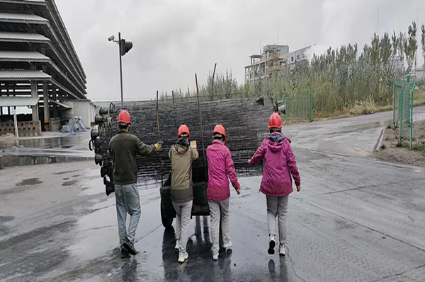 細(xì)雨中,早到的操作工將成品庫西側(cè)的所有舊龍骨清理至機(jī)修廠房前面空地處,一千多條龍骨,在他們在小小的板車上一車一車的拉運完,防砸鞋和褲管都已濕透,但看著清理完整齊的現(xiàn)場,所有的辛苦頓時煙消云散,掛滿灰塵的臉上洋溢出笑容。
