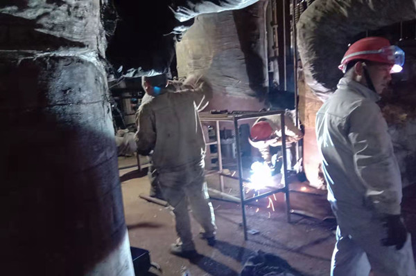 此時(shí)隆隆的吊車聲響徹在檢修現(xiàn)場。檢修作業(yè)最關(guān)鍵的時(shí)刻到來了,只見維修班長熟練用割槍切割著設(shè)備與框架的支點(diǎn),通紅的鐵水四處飛濺不時(shí)落在他的衣服上,留下黑色的小孔。他也顧不得這些,迅速完成了設(shè)備與框架的切割,其他人員也各司其職忙著斷口。隨著吊鉤的慢慢升起設(shè)備輕松與框架分離,由于空間狹小吊臂的活動(dòng)空間有限,吊裝作業(yè)顯得異常的緩慢,這對長時(shí)間在寒冷的室外作業(yè)人員是個(gè)極大的考驗(yàn),伴隨著指揮人員最后的口令下達(dá),舊的再沸器設(shè)備被緩緩地放到地上。此時(shí)已過中午時(shí)分,雖然大家早已饑腸轆轆,但是每個(gè)人的臉上洋溢著笑容,因?yàn)樗麄兩钌畹亩茫挥薪?jīng)歷了艱辛的拼搏,才會(huì)收獲成功的喜悅。