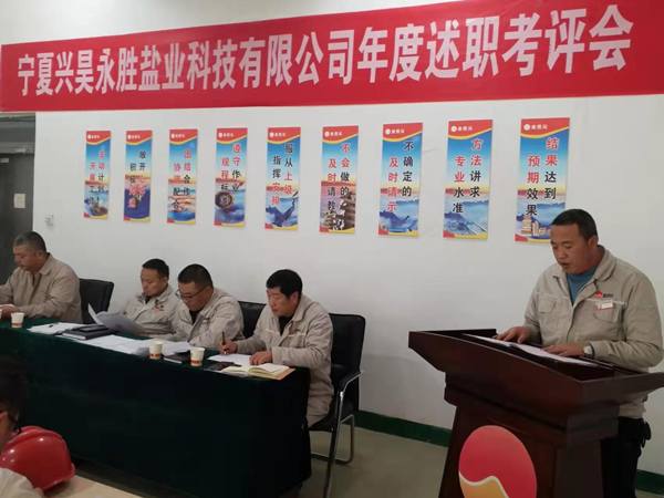 2021年12月2日下午,寧夏興昊永勝鹽業(yè)科技有限公司組織召開2021年度管理人員述職考評(píng)會(huì),聽取管理人員履職情況、管理目標(biāo)和重點(diǎn)工作完成情況、分管工作和本人履職中存在問題及下一年的工作思路。