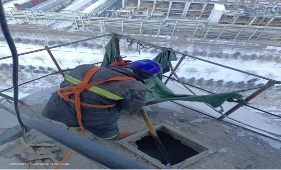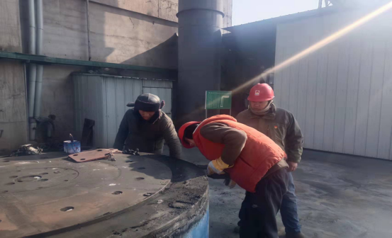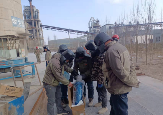 檢修人員鉆進(jìn)預(yù)熱器檢查門子是檢修預(yù)熱器管道的“必經(jīng)之路”,也是支撐徹底完成預(yù)熱器檢修的關(guān)鍵環(huán)節(jié)。因為時間緊、任務(wù)重,為了不影響檢修進(jìn)度,檢修人員常常進(jìn)去干干凈凈,出來時灰土灰臉,不得不輪番上陣,從上到下,完成結(jié)皮清理。他們四人一組,從安全監(jiān)護(hù)到技術(shù)指導(dǎo),干一干,歇一歇,接著再繼續(xù)……即便是當(dāng)前零下十幾度,也能干出一身汗,喝口水的功夫,滲出的汗液就能結(jié)成冰。