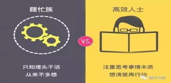 瞎忙族經(jīng)?雌饋砗孟窈苡袌(zhí)行力,接到任務(wù)說干就干,風(fēng)風(fēng)火火的。但是經(jīng)常干到一半,發(fā)現(xiàn)方向錯(cuò)了!一切又得推倒重來,反反復(fù)復(fù),效率低不說,還浪費(fèi)公司資源。而高效的人不僅能埋頭干活,也非常注重抬頭看路。行動(dòng)之前,花必要的時(shí)間想清楚問題的本質(zhì)是什么,怎么做最合理,有沒有更優(yōu)的方案?低效率和無用功是他們極力避免的。