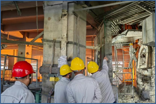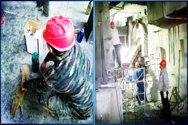 時光如白駒過隙,1#、2#電石爐已安全穩(wěn)定生產(chǎn)六年有余,爐內(nèi)碳磚、耐火磚燒損嚴(yán)重,已達(dá)到大修周期,加之五、六月份大量使用佳成礦山石料,爐內(nèi)鐵水多,四臺電石爐爐眼附近耐火磚、碳磚不同程度燒損,尤其是1#爐3#眼、2#爐3#眼,爐眼上方爐壁被鐵水擊穿,出爐工作不能正常進(jìn)行,嚴(yán)重影響到電石爐的安全穩(wěn)定運行;為盡快消除制約安全生產(chǎn)穩(wěn)定運行的隱患問題,為電石爐穩(wěn)定運行提供強有力的保障,在公司統(tǒng)一部署下,自五月底開始,集各裝置維修工力量由電石一裝置組織對兩臺爐爐壁進(jìn)行修復(fù)。