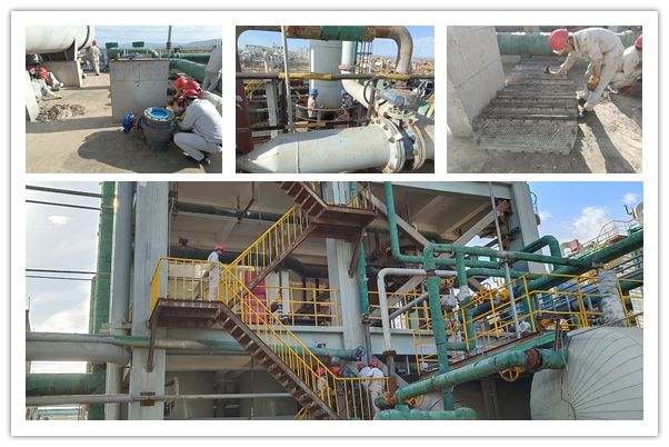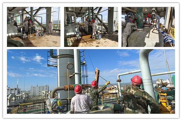 檢修第一天,各崗位管線旁和設備前隨處可見檢修人員忙碌的身影,全體員工以飽滿的熱情和昂揚的斗志全身心投入到檢修工作中。在檢修中錘煉了意志、增長了才干、提升了能力。本次檢修主要涵蓋了現(xiàn)場設備閥門的維護保養(yǎng)以及安全運行檢查,精餾高低塔清理,干燥流化床清洗等項目。