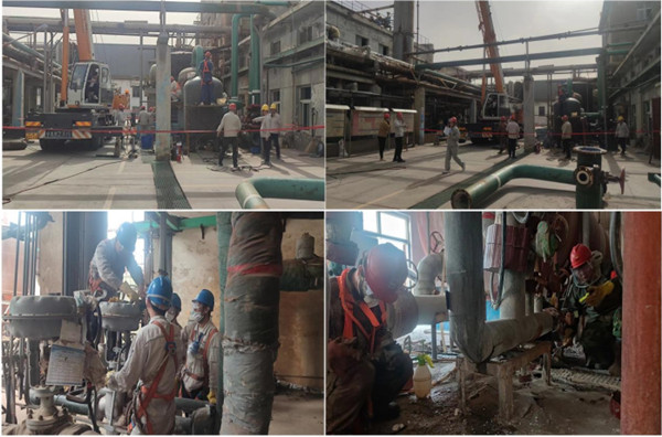 檢修期間天氣多變,有時(shí)異常炎熱、有時(shí)狂風(fēng)大作黃沙漫天,但依舊不能磨滅大家檢修的積極性,依舊不能阻擋領(lǐng)導(dǎo)們關(guān)心一線檢修人員的腳步。在檢修過程中各級(jí)領(lǐng)導(dǎo)親臨現(xiàn)場(chǎng)與現(xiàn)場(chǎng)檢修人員共同加班加點(diǎn),親自安排指導(dǎo)現(xiàn)場(chǎng)的檢修工作,從現(xiàn)場(chǎng)作業(yè)票證的辦理到危險(xiǎn)辨識(shí)和防護(hù)措施,時(shí)刻提醒著大家始終把安全放在第一位,同時(shí)嚴(yán)把質(zhì)量關(guān),確保檢修質(zhì)量。