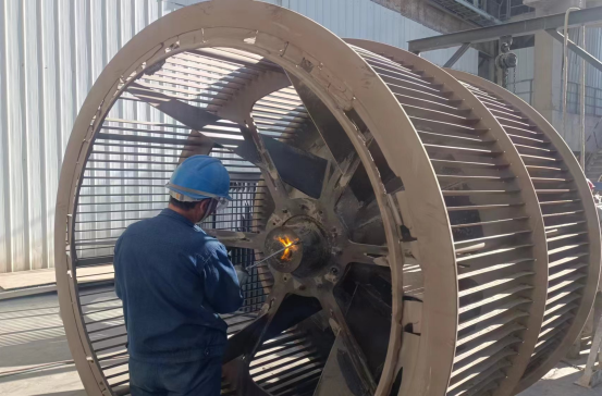 走近檢修現(xiàn)場(chǎng)的每一層框架,會(huì)有一種“未見(jiàn)其人,先聞其聲”的感覺(jué)。錘子的敲擊聲、檢修負(fù)責(zé)人的交底聲、噼里啪啦的風(fēng)聲,聲聲入耳,像一首和諧的樂(lè)章。風(fēng)大,高處作業(yè)不能進(jìn)行,就轉(zhuǎn)至地面隱蔽處作業(yè);下雨,室外作業(yè)不能進(jìn)行,就轉(zhuǎn)到廠房、塔架框架里,不管自然條件如何變化,檢修作業(yè),雷打不動(dòng)。
