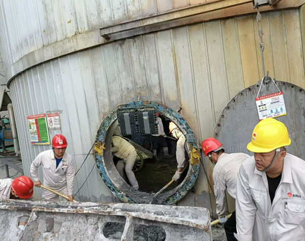 人在專注干一件事的時候是最帥氣的,盡管他們身上滿是油污,也掩蓋不住他們認真、擔當和富有責任感的品質(zhì)。他們把每一次檢修都當成一次全新的挑戰(zhàn),把每一次檢修都當做一次經(jīng)驗的積累,一張張布滿油污、灰塵的面孔,綻放出最為清澈和動容的笑容。你看,脫硫塔檢修現(xiàn)場,他們在滿是泥水的脫硫塔內(nèi)來來回回奔跑了無數(shù)次,泥污沾滿了全身每一個地方,不知是汗水還是泥水打濕了衣服。他們干活不分你我、不惜力氣、相互配合,安全高效地完成了料液清理工作,為脫硫塔消漏、防腐做好了準備工作。