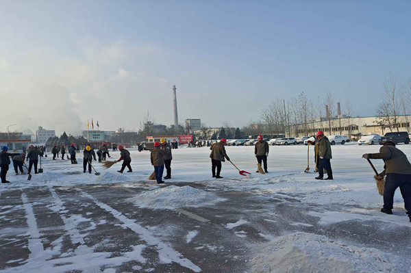 在除雪過程中,領(lǐng)導(dǎo)們始終與員工們并肩作戰(zhàn),他們不僅是指揮者,更是參與者。當遇到積雪結(jié)冰難以清理時,領(lǐng)導(dǎo)們與員工們共同商議對策,現(xiàn)場調(diào)配資源。他們親自上陣,與員工們一起喊著口號,齊心協(xié)力將積雪堆攻克。