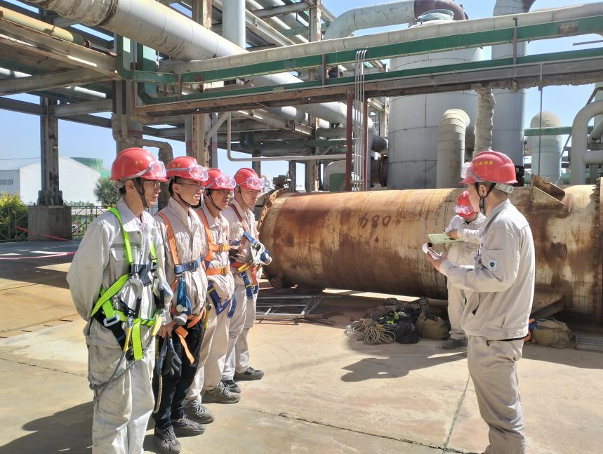 8點(diǎn)整,我們背上工具包一起出發(fā)。第一站是氯化氫裝置生產(chǎn)區(qū)。剛靠近設(shè)備,刺鼻的氣味就撲面而來,我們熟練地戴上防毒口罩,徑直走向壓力表,查看每一塊壓力表的數(shù)值是否準(zhǔn)確,表盤衛(wèi)生是否干凈,是否在有效檢定期內(nèi),有無泄漏。接著我們開始巡查現(xiàn)場的閥門及各類儀表的運(yùn)行狀態(tài),是否穩(wěn)定運(yùn)行,有無跑冒滴漏。9點(diǎn)30分,兩人趕到一次鹽水系統(tǒng)。這里的化鹽池pH計(jì)顯示值只有8,低于工藝要求。老王走到pH計(jì)探頭旁,發(fā)現(xiàn)探頭表面附著一層白色污垢!斑@是鹽水垢,會(huì)影響測量精度!彼┐骱梅雷o(hù)用品,用專用清洗劑清洗探頭,清洗探頭要輕柔,不能刮傷探頭,不然就廢了。清洗完畢后,他重新安裝探頭,等待數(shù)值穩(wěn)定:“現(xiàn)在pH值9.8,合格了”,老王一邊記錄數(shù)據(jù),一邊給我們講解:“這個(gè)PH計(jì)探頭容易結(jié)垢,這個(gè)儀表是關(guān)鍵設(shè)備必須時(shí)刻精準(zhǔn)”。