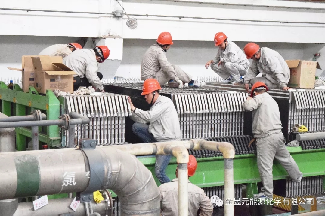 離子膜裝置B槽檢修作業(yè)現(xiàn)場,裝置將去年A槽檢修換膜總結(jié)的經(jīng)驗(yàn)和方法充分運(yùn)用到此次作業(yè)中,同時(shí)裝置檢修人員積極與廠家技術(shù)人員在鏟膠、貼膠、貼膜等作業(yè)方法和技術(shù)上進(jìn)行廣泛的交流學(xué)習(xí),有效加快了檢修進(jìn)度。
