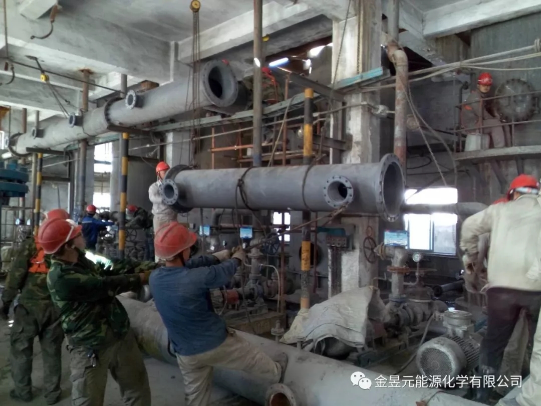 乙炔裝置X清凈廠房檢修作業(yè)現(xiàn)場有條不紊,檢修人員分工明確,各負(fù)其責(zé),正在進(jìn)行水環(huán)泵進(jìn)出口管線更換的相關(guān)工作。