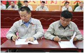 為了進(jìn)一步明確權(quán)責(zé),強(qiáng)化各級(jí)管理人員的責(zé)任意識(shí),提高履職能力,會(huì)上,集團(tuán)公司各級(jí)主管領(lǐng)導(dǎo)簽訂了《2019年經(jīng)營管理目標(biāo)責(zé)任書》和《2019年安全環(huán)保目標(biāo)責(zé)任書》。