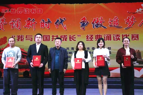 4月23日世界讀書日,由中共青銅峽市宣傳部、青銅峽市文化旅游體育廣播局、青銅峽市總工會聯(lián)合主辦,青銅峽市圖書館承辦的“贊頌新時代,爭做追夢人——我與祖國共成長”經(jīng)典誦讀比賽在青銅峽市影劇院隆重舉行。