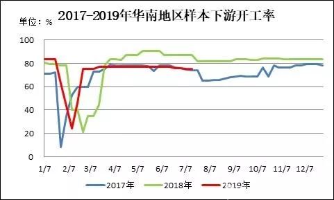 圖7 2017-2019年華南地區(qū)樣本下游開(kāi)工率