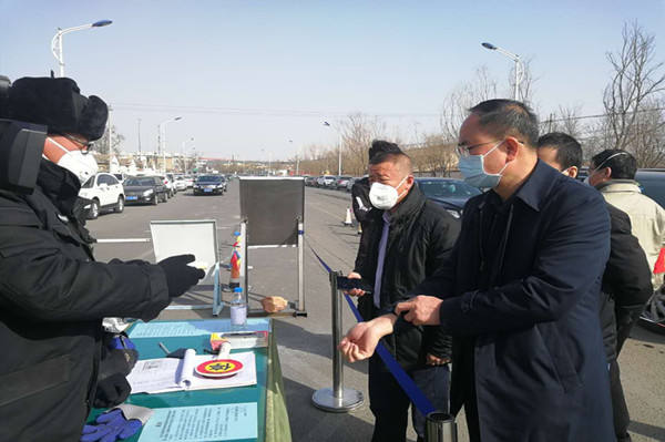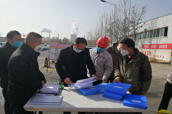 金永靈市長按常規(guī)程序進行測量體溫和登記信息,并翻閱出入大門人員信息登記臺賬。他詳細了解了集團公司疫情防控工作,總裁葉森和黨委副書記兼工會主席王立軍逐一回答。