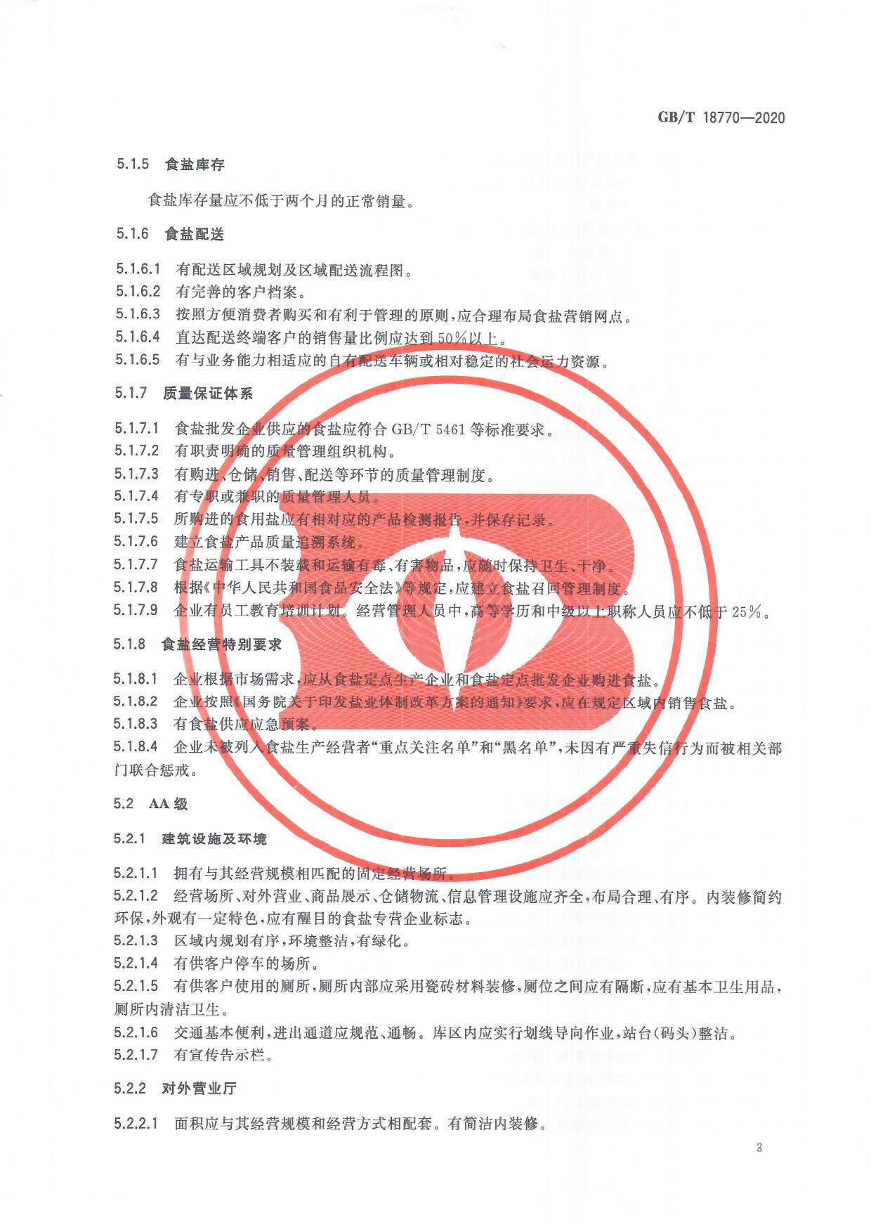 食鹽批發(fā)企業(yè)管理標(biāo)準(zhǔn):GB/T 18770-2020