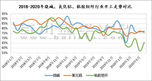從開工率方面,根據百川統(tǒng)計數據,2020年1-6月粘膠短纖平均開工率為65.1%,同比2019年1-6月平均開工率74.9%下滑13.1%;2020年1-6月氧化鋁平均開工率為75.9%,同比2019年1-6月平均開工率81.61%下滑7%。