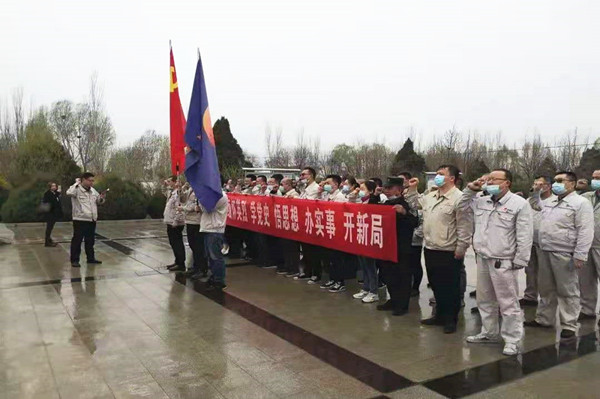 憑吊先輩英魂,傳承紅色基因;顒又,金昱元集團(tuán)公司黨員、發(fā)展對象、積極分子舉起右手,莊嚴(yán)重溫入黨誓詞。