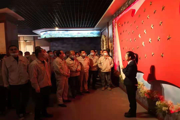 活動結(jié)束前,大家聚集在黨旗下,鄭重公諾,表示要以昂揚(yáng)的姿態(tài)奮進(jìn)“十四五”、奮進(jìn)新征程,爭當(dāng)排頭兵,干在先,走在前;要不忘初心、牢記使命,繼承先輩遺志,讓紅色基因代代相傳,表達(dá)對革命先烈的感恩與敬仰。