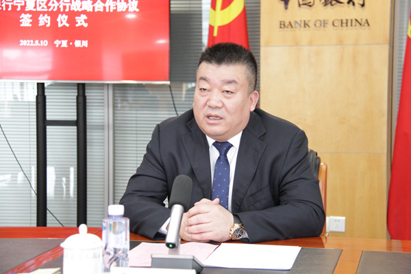 中國(guó)銀行寧夏分行行長(zhǎng)黨委書(shū)記、行長(zhǎng)肖達(dá)致辭。他對(duì)金昱元化工集團(tuán)和中國(guó)銀行寧夏分行產(chǎn)業(yè)鏈發(fā)展項(xiàng)目戰(zhàn)略合作協(xié)議簽約表示熱烈祝賀,他表示,簽約后,中國(guó)銀行寧夏分行將一如既往,盡銀行所能,為金昱元化工集團(tuán)項(xiàng)目建設(shè)給予資金上的大力支持,并預(yù)祝簽約圓滿成功。