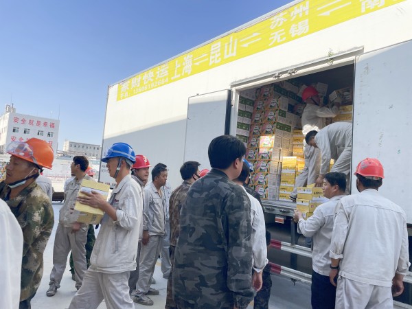 高溫猛如虎,關(guān)愛(ài)深似海。公司領(lǐng)導(dǎo)把西瓜、飲料、茶葉等慰問(wèn)品送到一線員工手中,送上公司黨委對(duì)一線員工的深切關(guān)愛(ài)。