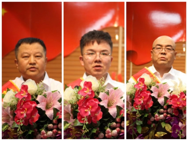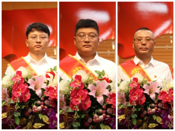 勞動(dòng)模范:左:資源循環(huán)公司 席文童;中:廣拓能源公司 麻玉龍;右:炔烴節(jié)能公司 金學(xué)鋒
