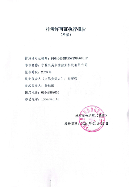寧夏興昊永勝鹽業(yè)科技有限公司2023年度排污許可執(zhí)行報告