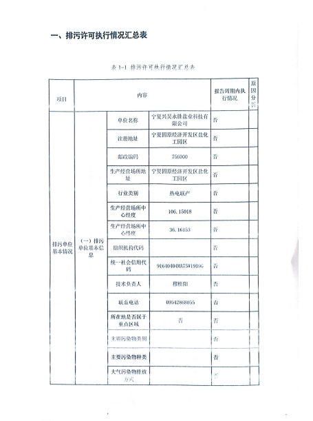 寧夏興昊永勝鹽業(yè)科技有限公司2024年第1季度排污許可執(zhí)行報...