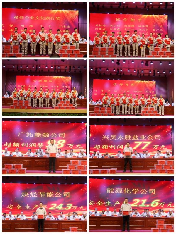 大會對一年來涌現(xiàn)出積極進取、勇于開拓、奮發(fā)有為,為公司穩(wěn)定發(fā)展作出突出貢獻的45個先進集體和123名先進個人進行了表彰。對獲得“超額利潤獎”的廣拓能源公司、興昊永勝鹽業(yè)公司、炔烴節(jié)能公司、資源循環(huán)公司、股份公司供應(yīng)部、華峰塑膠公司、能源化學(xué)公司,分別給予97萬元、77萬元、30萬元、29萬元、28萬元、15萬元、8萬元現(xiàn)金獎勵;對獲得“安全生產(chǎn)獎”的炔烴節(jié)能公司、能源化學(xué)公司、廣拓能源公司、興昊永勝鹽業(yè)公司、資源循環(huán)公司、華峰塑膠公司,分別給予24.3萬元、21.6萬元、18萬元、18萬元、14.4萬元、4.5萬元現(xiàn)金獎勵。通過表彰,激勵各單位和全體員工以先進集體與個人為榜樣,繼續(xù)發(fā)揚“團結(jié)、拼搏、求實、創(chuàng)新”的企業(yè)精神,以更加飽滿的熱情和積極的作風(fēng)投入到企業(yè)發(fā)展建設(shè)中,全力推動2025年各項工作順利開展。