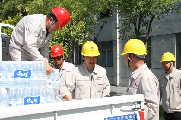 為嚴(yán)格做好高溫季節(jié)安全生產(chǎn)保障措施,持續(xù)做好防暑降溫工作,有力保障生產(chǎn)系統(tǒng)安全穩(wěn)定運(yùn)行,7月29日,寧夏金昱元化工集團(tuán)股份有限公司黨委副書記尚興、監(jiān)事會(huì)主席郭復(fù)生、副總裁周光平等領(lǐng)導(dǎo)深入青銅峽片區(qū),開展“夏日送清涼”慰問活動(dòng)。